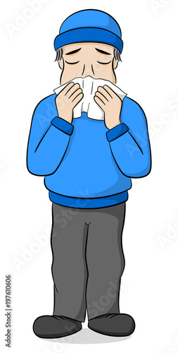 Schneuzender Cartoon Mann Mit Schnupfen Buy This Stock