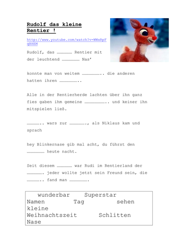 Rudolf Das Kleine Rentier German Song Gap Fill Teaching