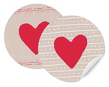 24 Herz Sticker Rotes Herzchen Auf Creme Farbenem Grund 2 Motive Runde Geschenkaufkleber Schone Etiketten Matte Papieraufkleber Fur Den