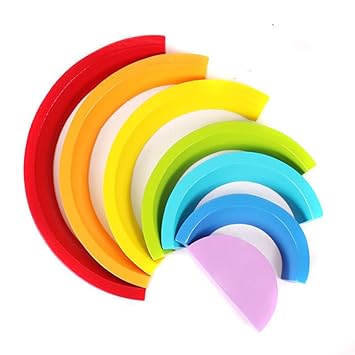 7 Teilig Holzbausteine Regenbogen Holz Spielzeug